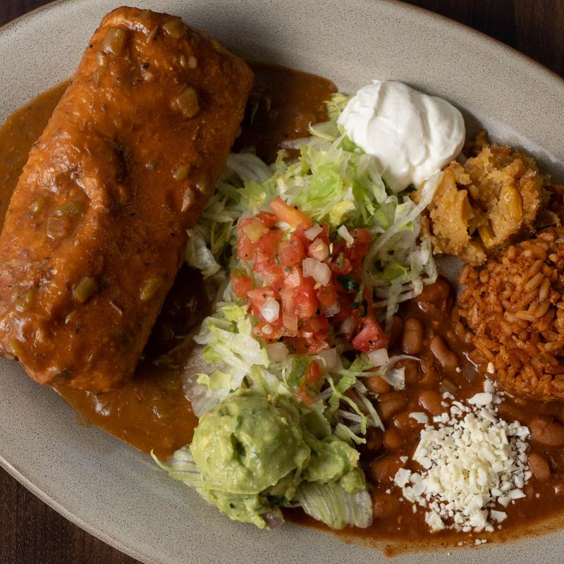 Served with pico de gallo, sour cream, guacamole, and a choice of Sweet or Spanish Rice