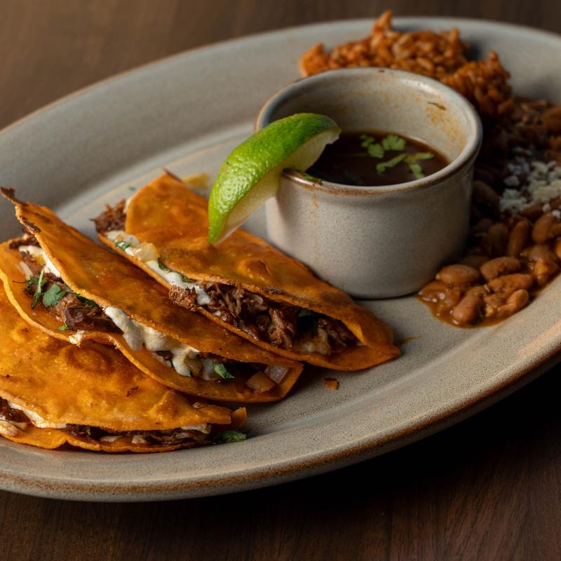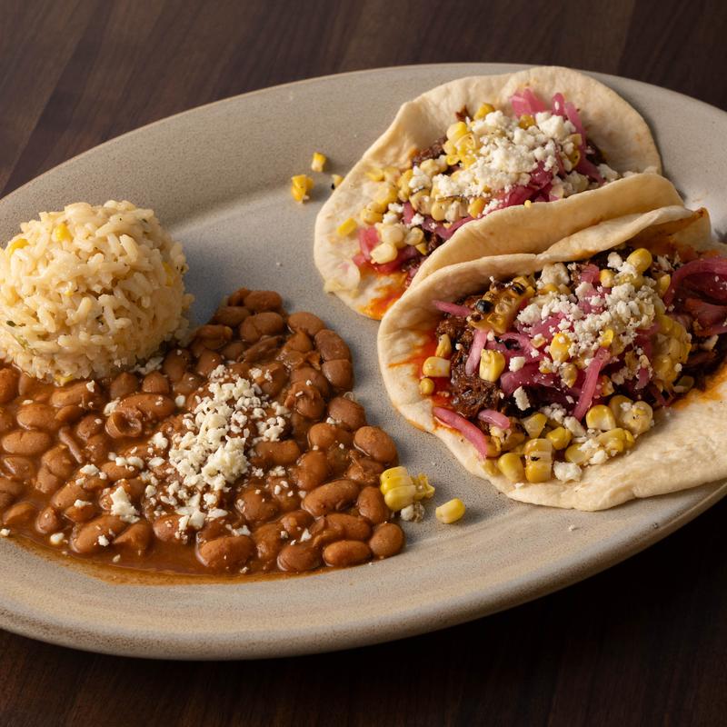 Two tacos on flour or corn tortillas served with a choice of Sweet or Spanish Rice
